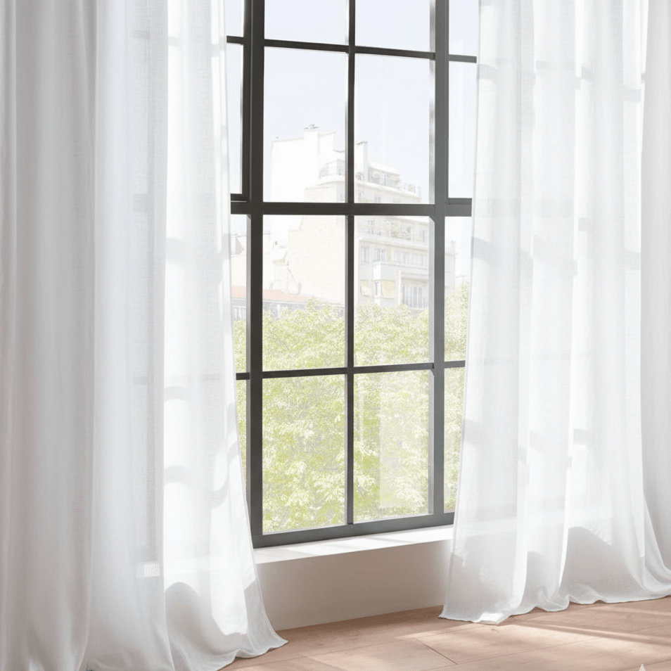 Käytä FRED-verhoa yksin saadaksesi valoisan ja ilmavan ilmeen tai yhdistä se pimennysverhoon, kuten NARA, joustavaa valonhallintaa varten.