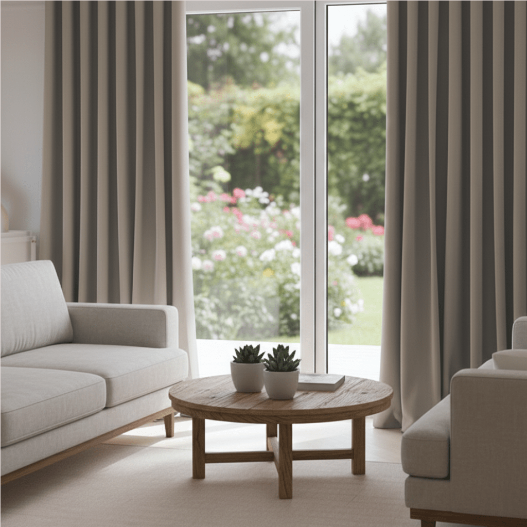 Elegantti aaltomainen efekti – kankaan painon ja verhonauhan ansiosta