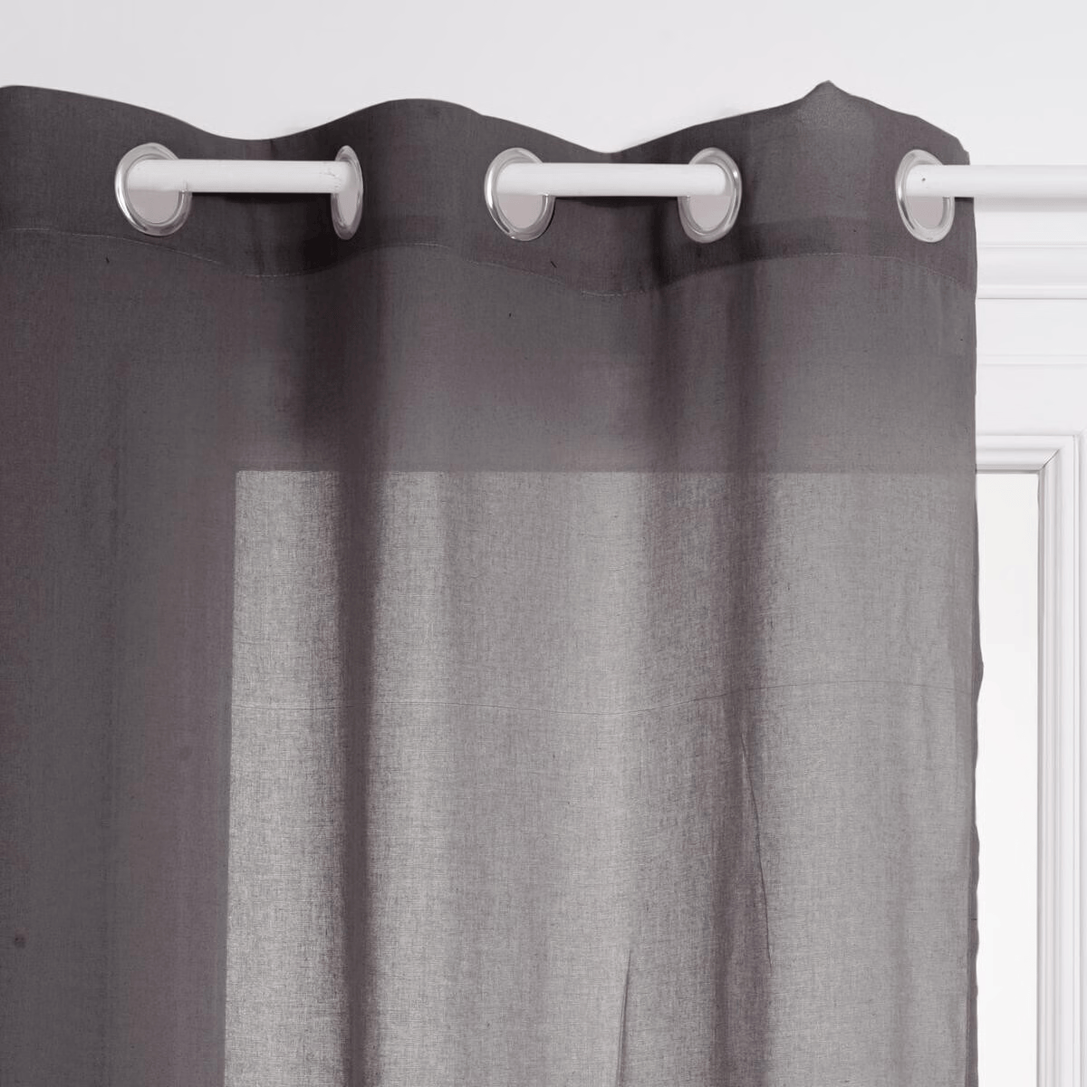 ANA er et let og elegant gardin i grå, der lader dagslyset strømme ind, samtidig med at det skærmer for direkte indkig. Det skaber et blødt og luftigt udtryk i hjemmet og giver rummet en rolig stemning. Gardinet er fremstillet i let polyesterstof blanding og hænges nemt op med de indbyggede metalringe – også på gardinstang uden boring.